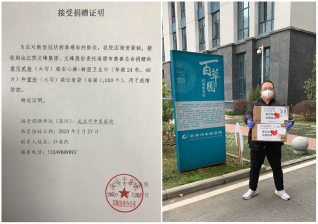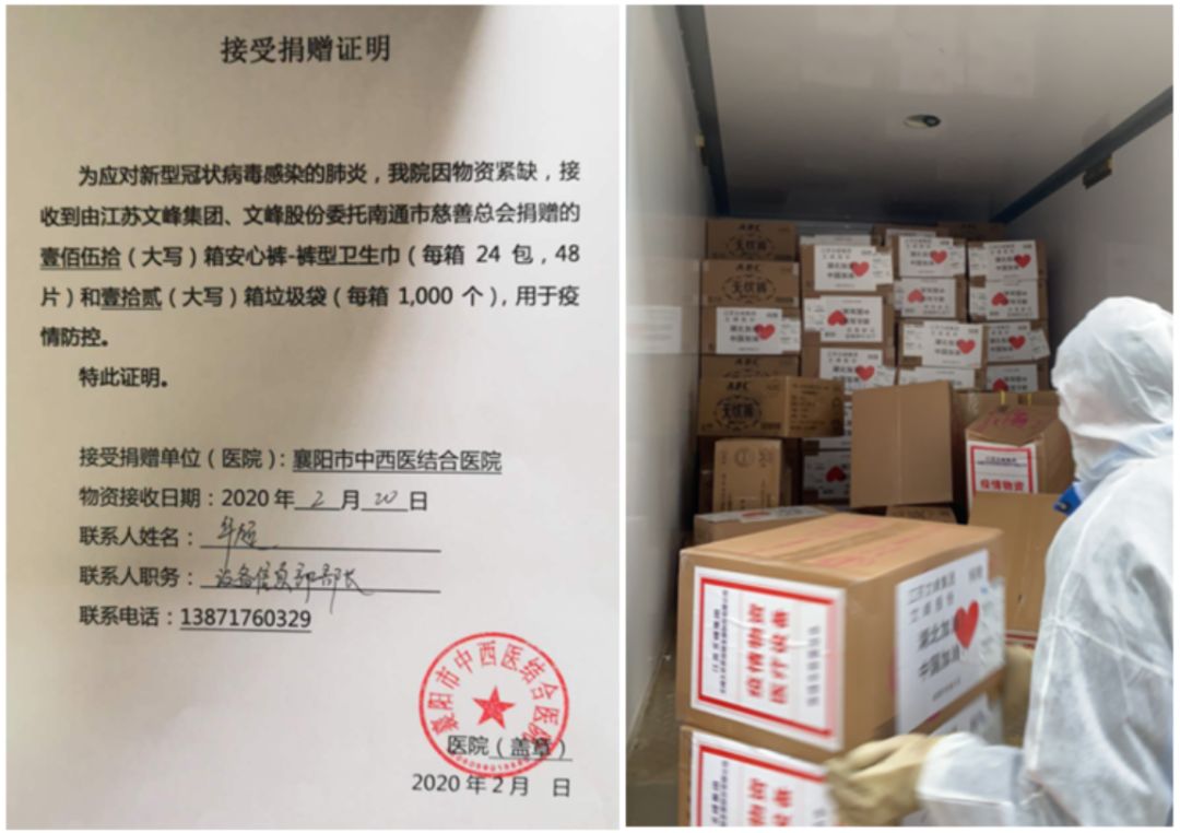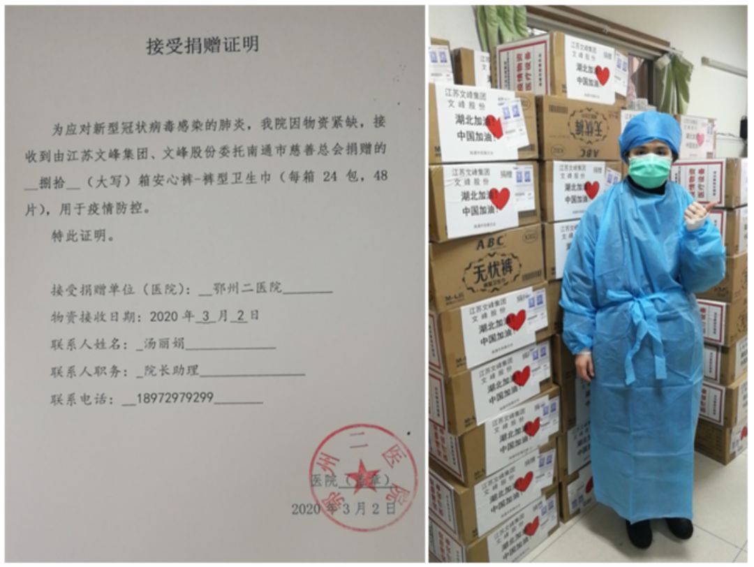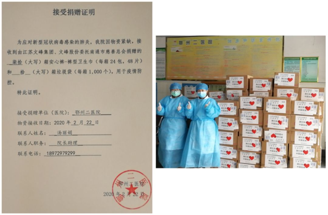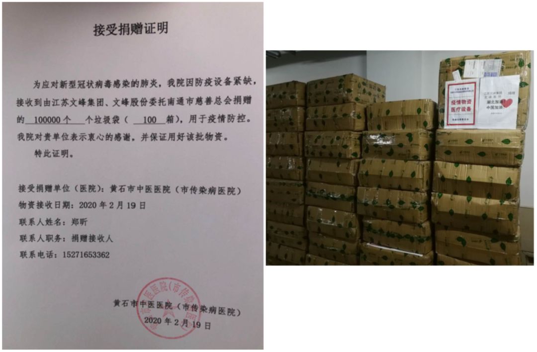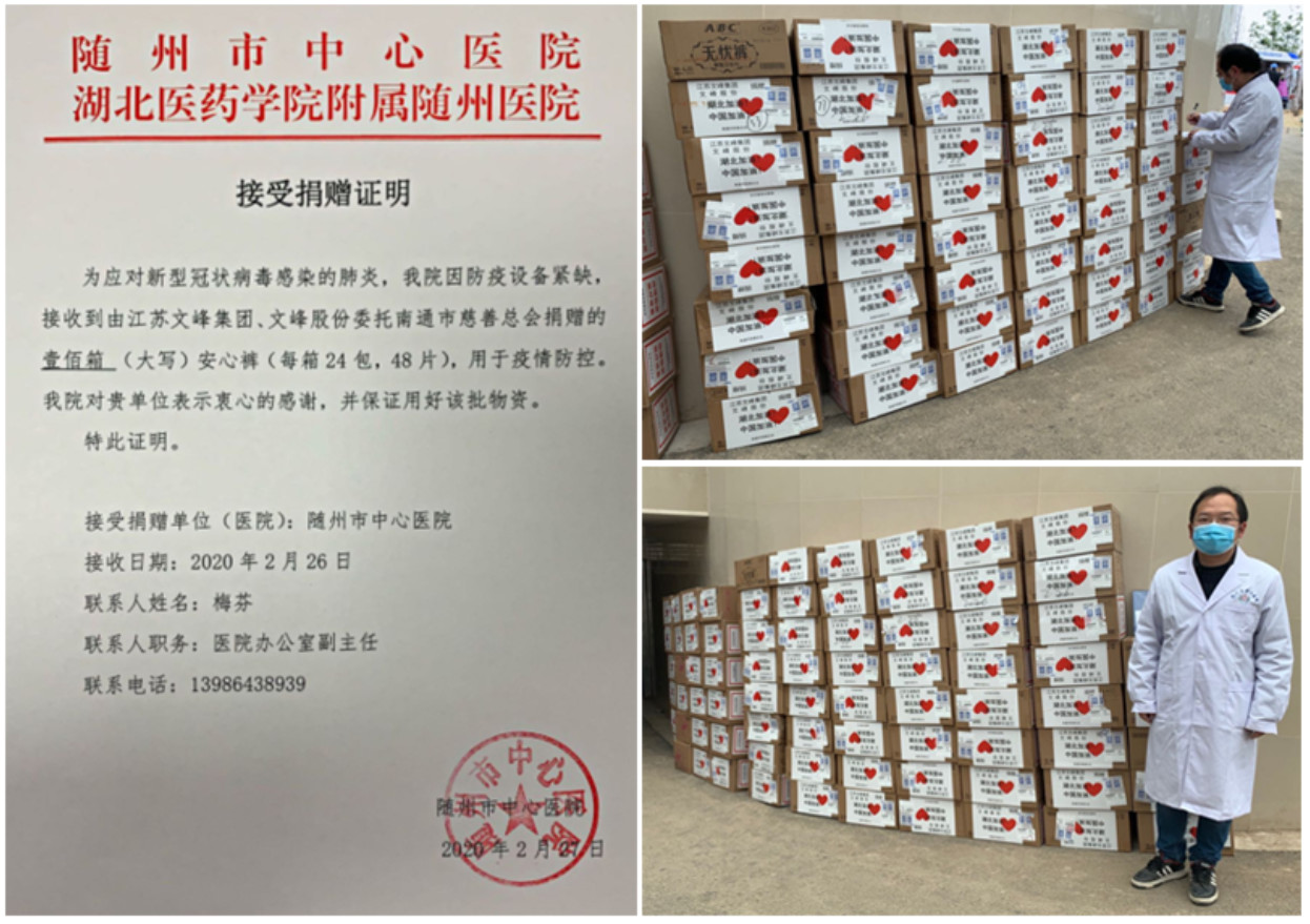 樂善好施,扶危助困,是中華民族的傳統美德。面對新冠肺炎疫情這場沒有硝煙的戰爭,為了向奮戰在一線的醫護人員提供全面支持,江蘇文峰集團、文峰股份全力以赴提供緊缺防控物資,周密組織、統一調配,將防控物資源源不斷地發往戰“疫”一線。所有這一切,就是為了同各界一起打贏疫情防控的攻堅戰。
