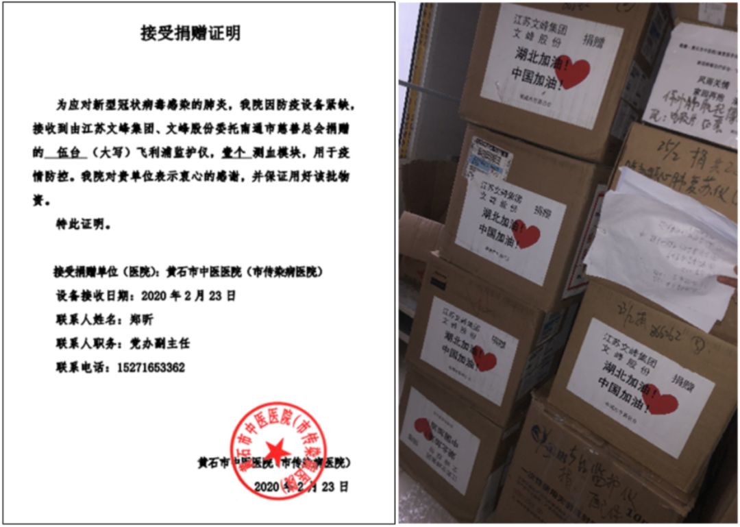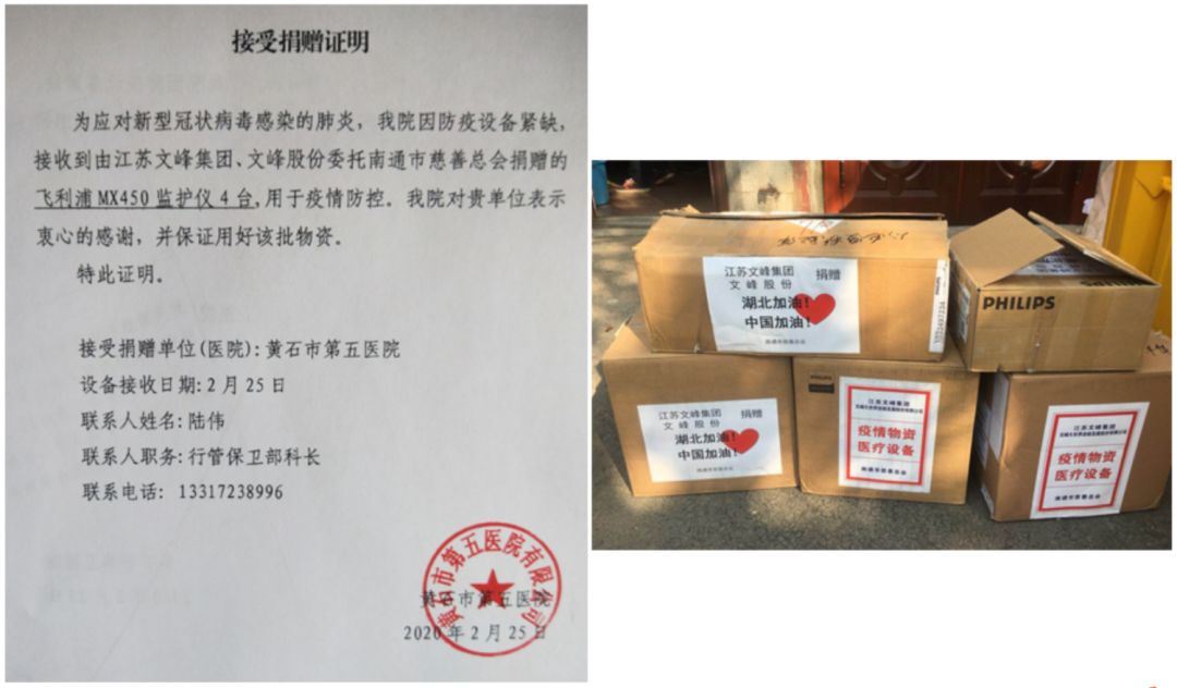 資金用途:江蘇文峰集團定向捐贈張家港市中醫醫院,用于采購醫療設備、防疫物資