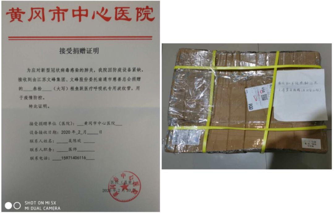 文峰集團攜手阿拉善SEE生態協會,共同捐助給武漢市第三醫院魚躍牌雙水平醫用專業呼吸機40臺,用于支援火神山醫院建設。