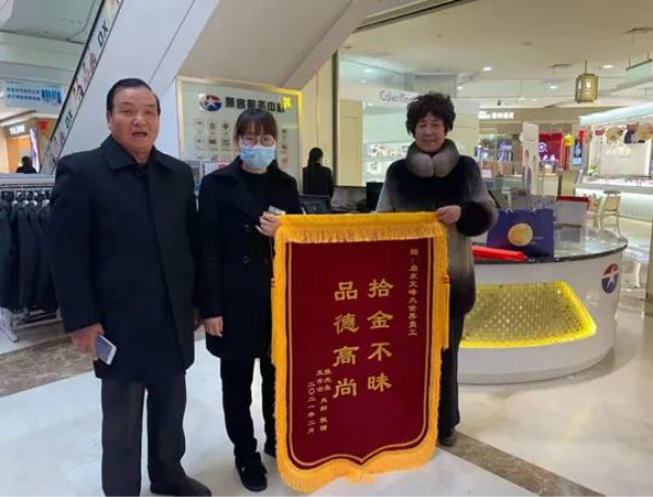 當(dāng)這位女士聽說顧牡丹一直在尋找她的時候,感動地表示,到底是文峰人啊,撿到兩萬多塊錢的金器,不但不貪圖,還主動地找我。回去后,她和家人特地制作了一面錦旗送到柜臺,以表達對文峰員工的感謝之情。